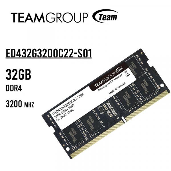 mem. sodimm teamgroup elite 32gb ddr4 3200 mhz (ted432g3200c22-sbk)